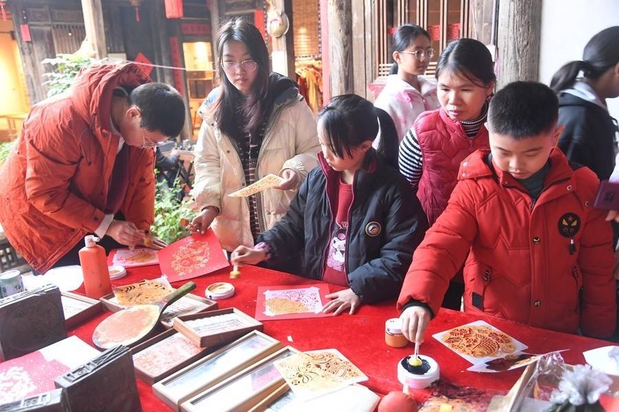 游客们正在制作拓印作品